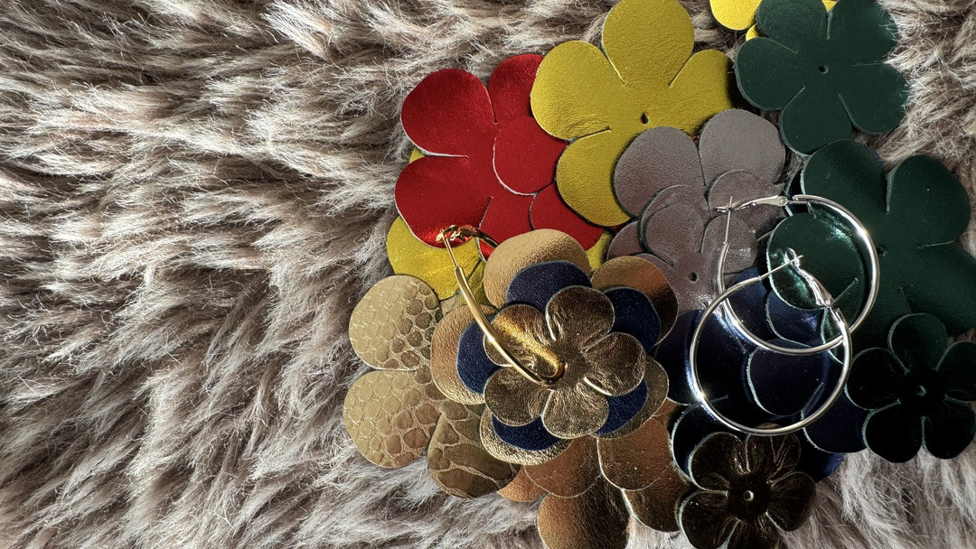 - 2 paires de fleurs en cuir véritable français