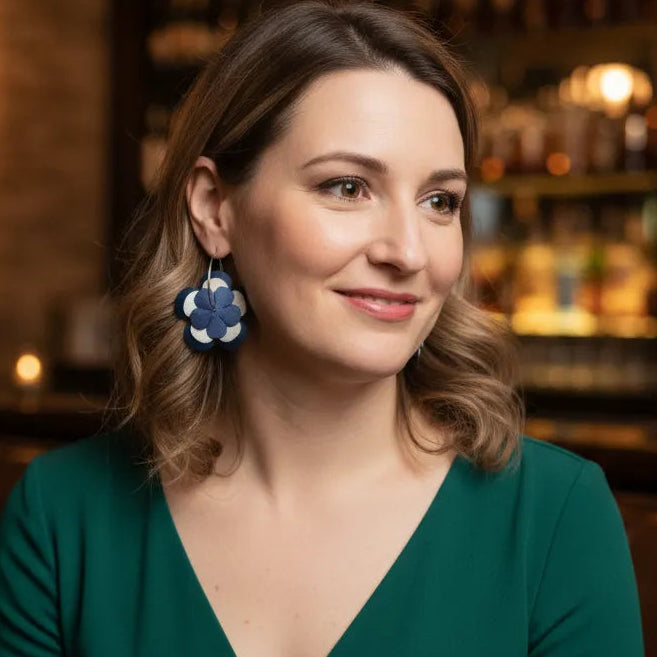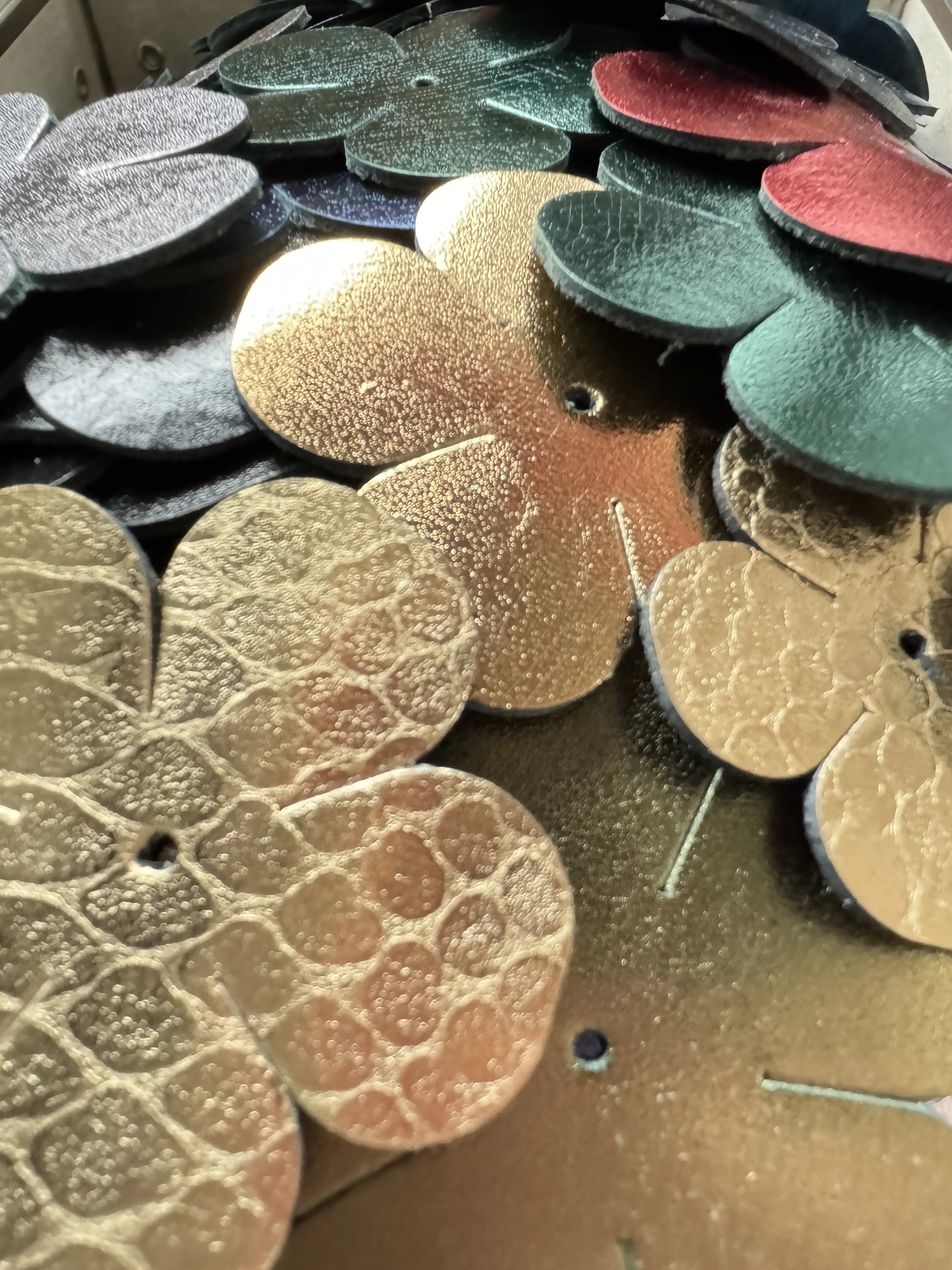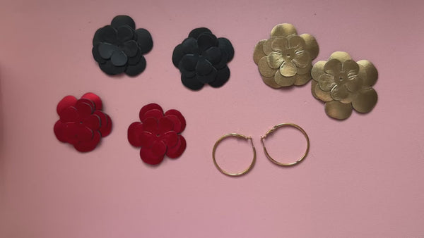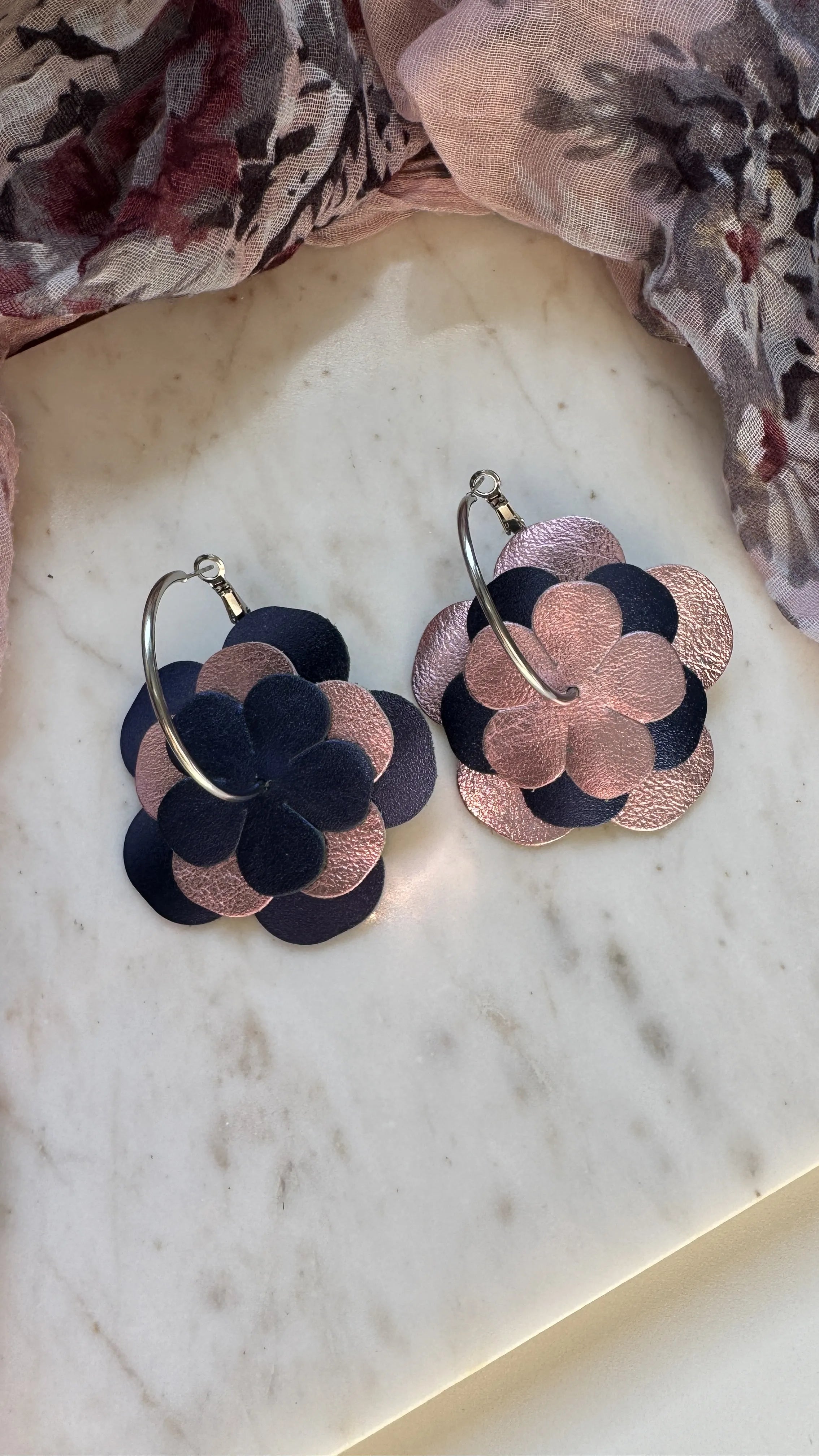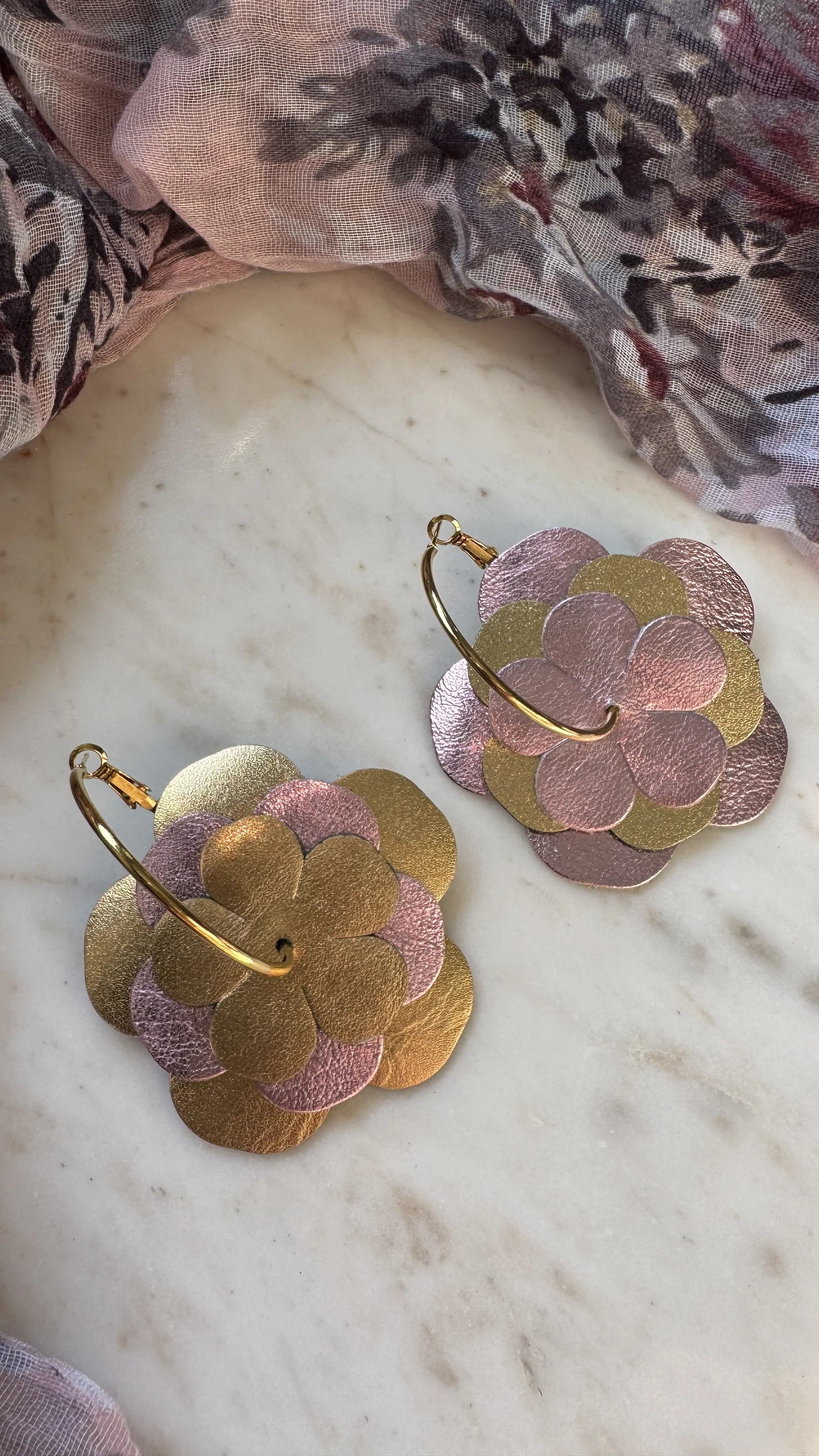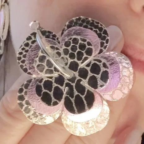 - 2 paires de fleurs en cuir véritable français